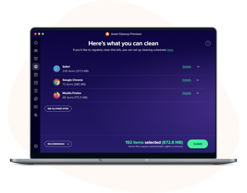 Your browser can record details of your online activity and personal data found in cookies, browsing history, logins, or caches. Set automatic cleaning of your Mac’s browsing history to run as often as you choose and remember — the more you clean your browser, the more private your data will be.