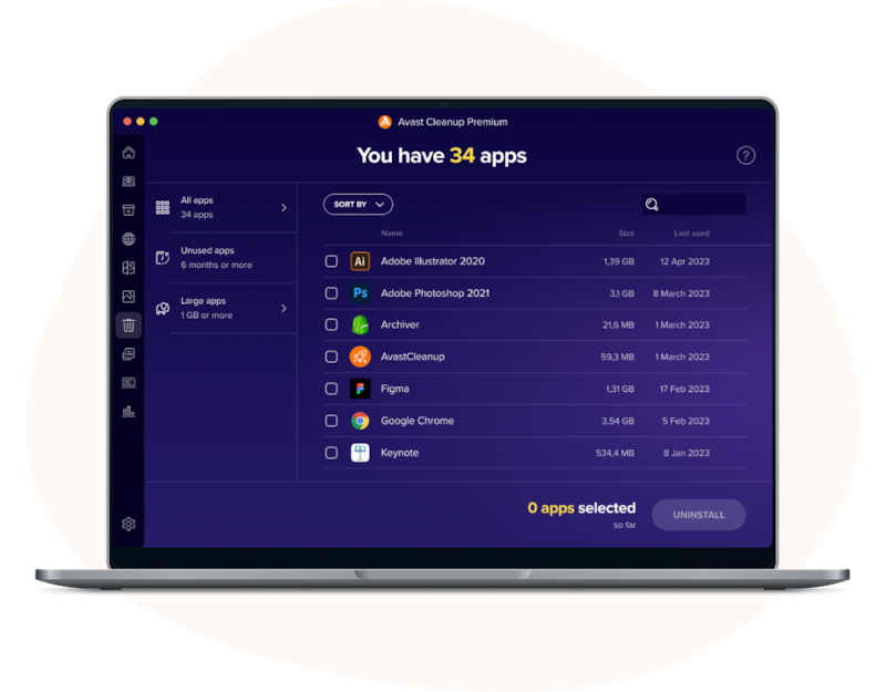Our uninstaller detects and helps you thoroughly remove apps you haven’t used in ages and those hogging up space on your disk. Plus, it cleans your Mac of leftover data.