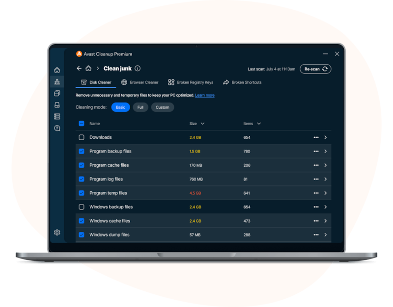 매일 PC를 사용하는 동안 Windows, 사용자 프로그램 또는 웹 검색만으로도 PC에 잡동사니 파일들이 남게 됩니다. Avast가 해결해 드립니다.