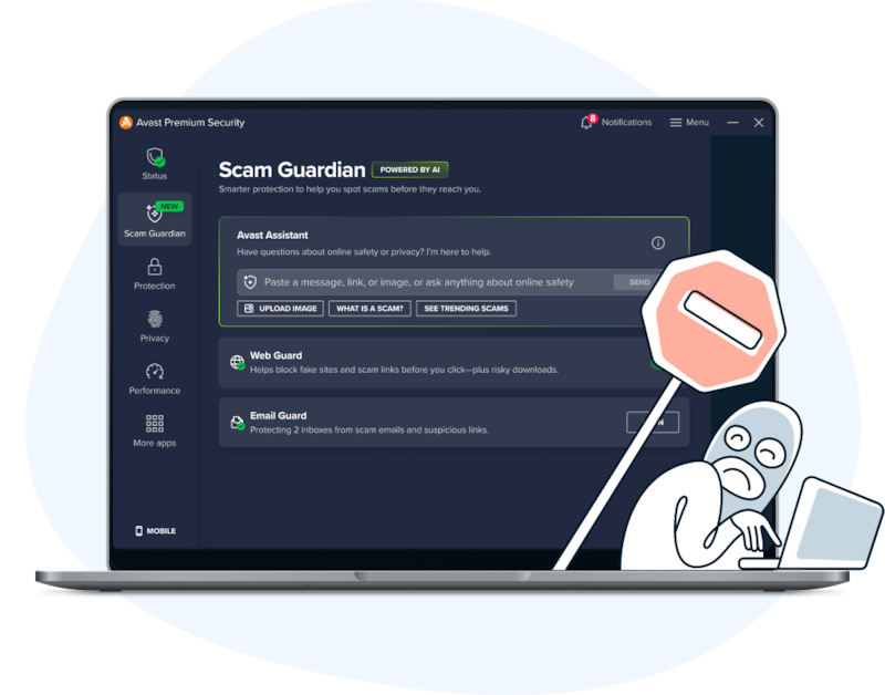 Se suspeitar que uma oferta ou mensagem online está a tentar enganar, o nosso Assistente Avast pode ajudar a identificar se é uma fraude. Oferece-lhe orientação fácil de ler em tempo real.